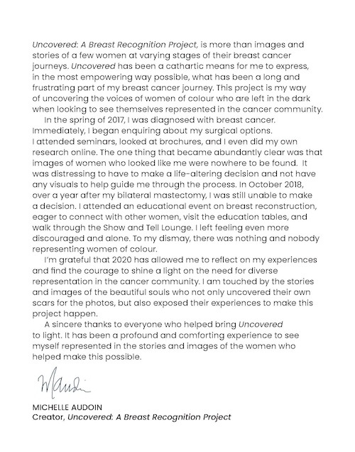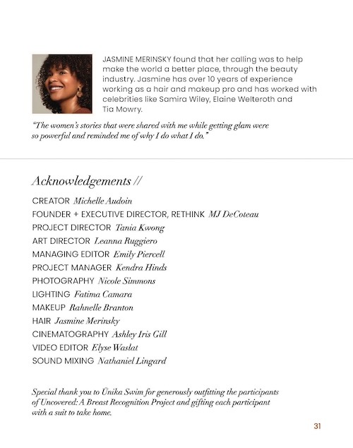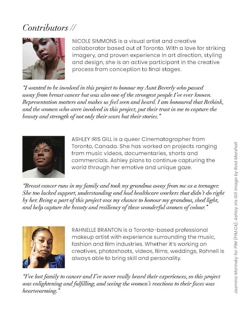 Ūnika Swimwear was selected to design custom pieces for Uncovered: A Breast Recognition, a groundbreaking Rethink Breast Cancer initiative with Pfizer Canada. The first of its kind in North America, the project amplified the stories of Black, Indigenous, and People of Colour breast cancer survivors. Unika Swimwear’s sustainable, inclusive